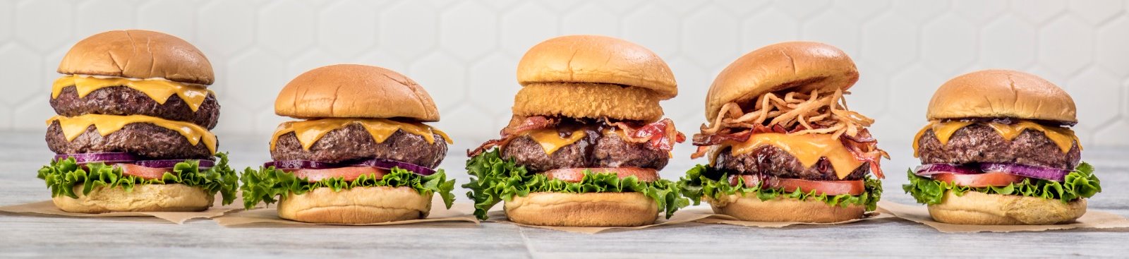 Three slices of cheddar cheese melted on our fresh steak burger, served with leaf lettuce, vine-ripened tomato and red onion.